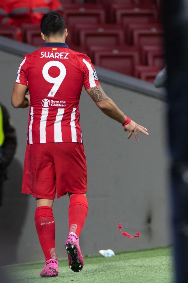↑图为马德里竞技队球员苏亚雷斯在比赛中被替换下场。