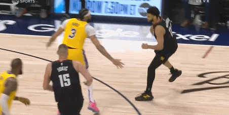 掘金的进攻思路也很明确:由于浓眉对位约老师且他是湖人首发组唯一的护筐大闸,约老师站三分线外把浓眉调离禁区,禁区空间留给穆雷背打里夫斯、戈登尝试冲击老詹(被造进攻犯规)以及约老师上线高位手递手策应联动波普/雷吉——约老师带走浓眉,操作空间留给队友。