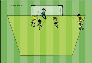 这样一个游戏可以发展球员多方面的个人技巧,如第一脚触球、凌空传球/射门、大腿停球、胸部停球等。