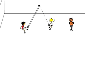 1.如图所示的区域中,一名孩子为守门员,当一名球员持球进攻射门的时候,其余的就为防守者阻止其进攻,当一名球员率先取得三个进球的时候就与守门员交换角色。