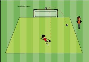 2.使用任意的脚法,将球从事先确定罚球区踢向球门的横梁。