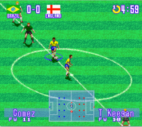 不过很快,随着科技发展,第一款真正好玩的“实况足球”,在SFC,超级任天堂上出现了。