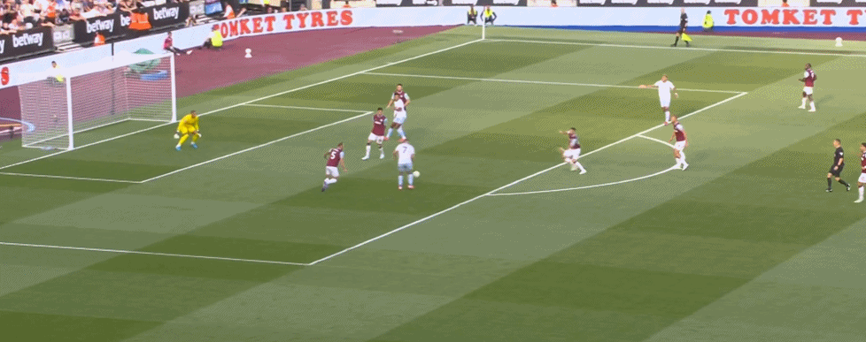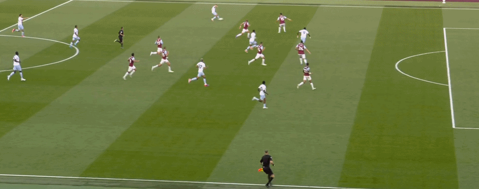 第79分钟,雅各布-拉姆齐送出助攻,杜兰推射破门!维拉2-1