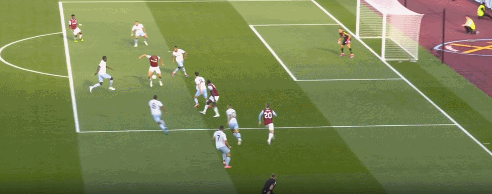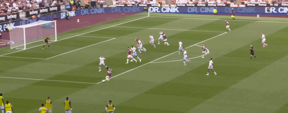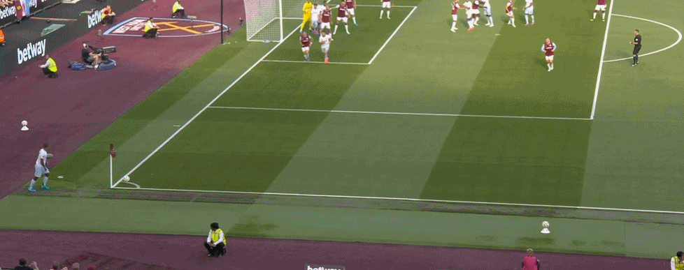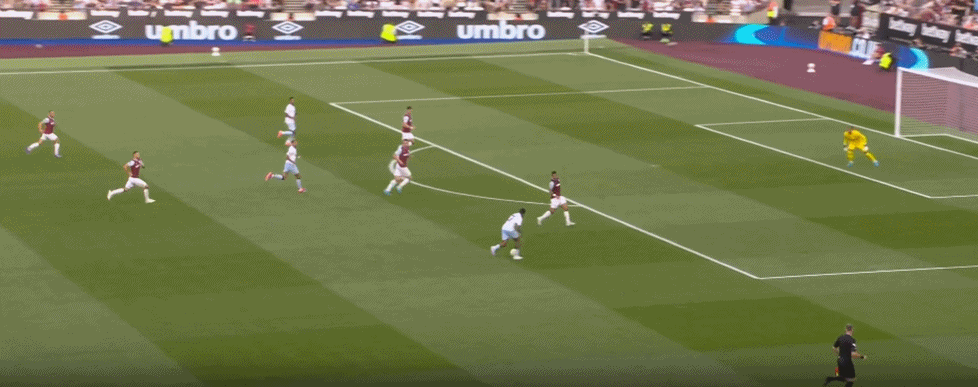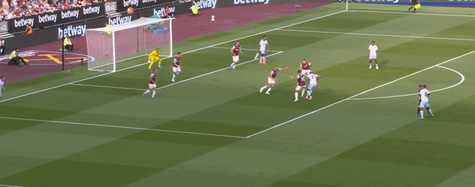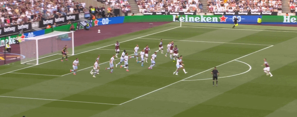第52分钟,库杜斯左路传中,奥纳纳头球解围,皮球被门将没收