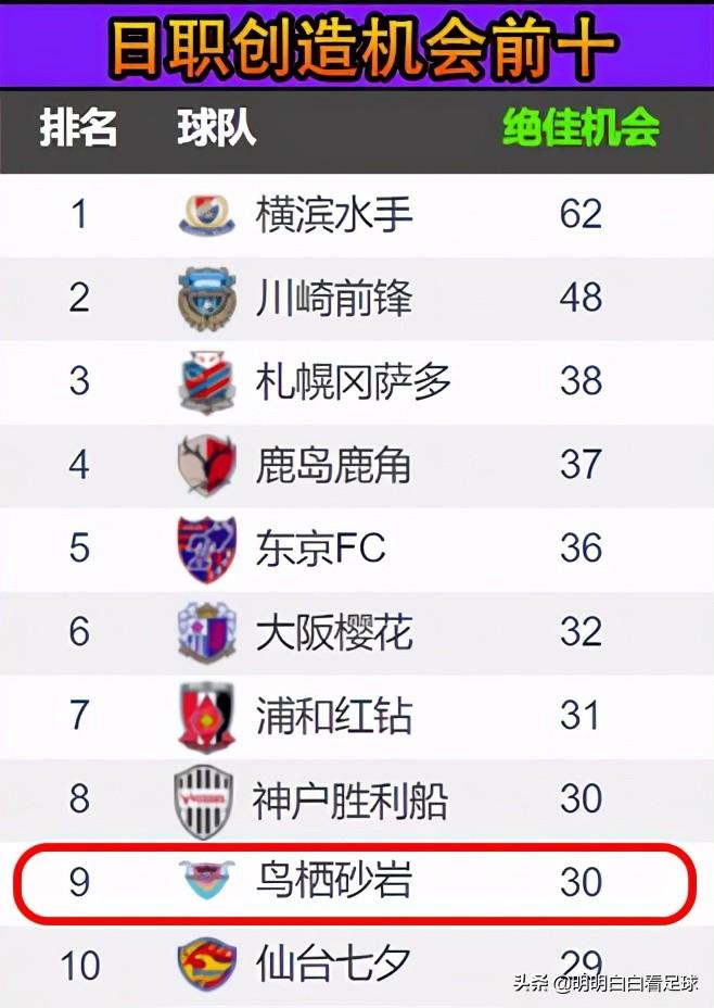 鸟栖创造机会的能力,其实只排在日职第9,比仙台也只强了那么一丢丢。