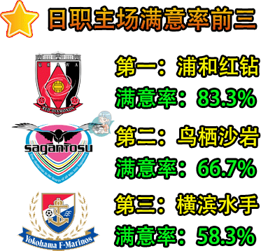 其实浦和表现也不差,特别是主场,满意率高达83.3%日职第一。