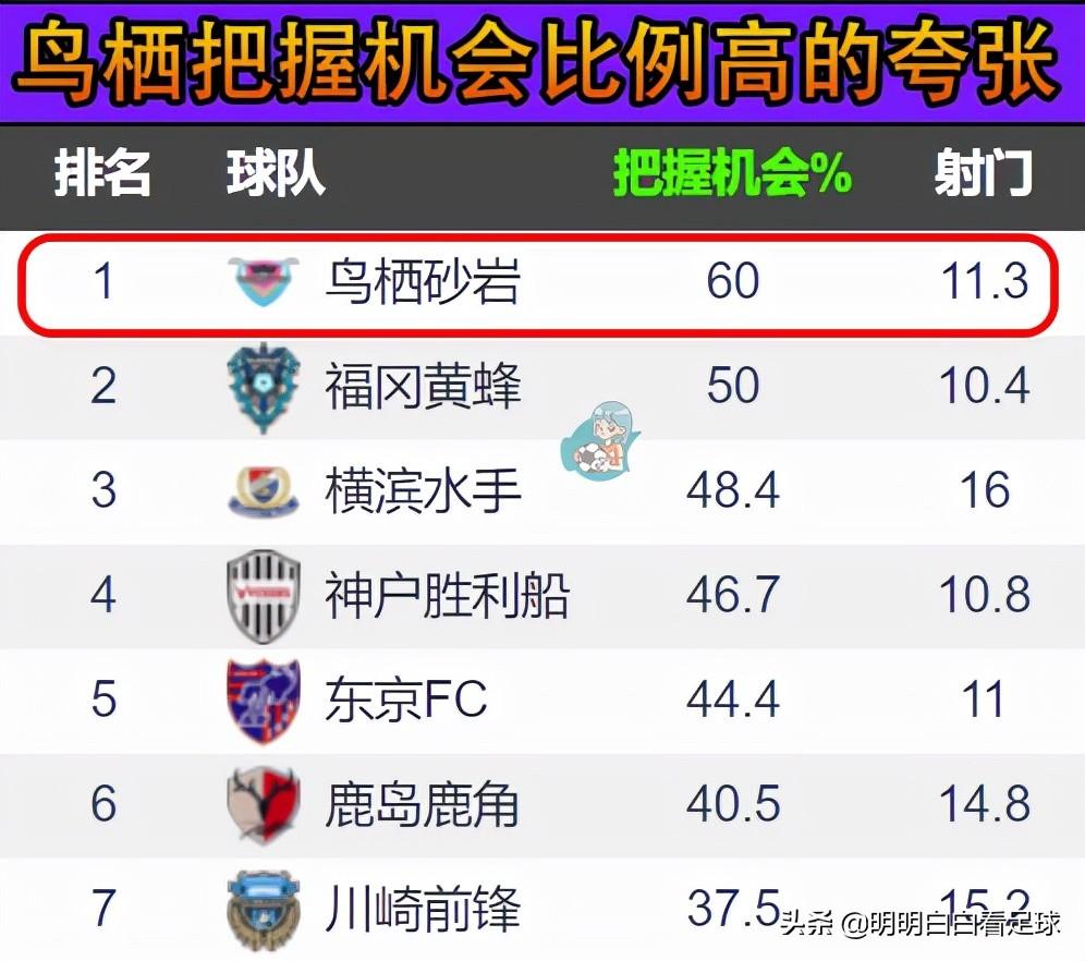 鸟栖把握绝佳机会的比例达到了夸张的60%,远超所有日职球队。