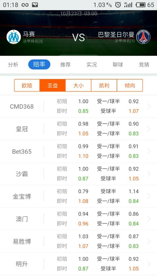 截至发稿时止根据百盈足球给出的盘口数据,亚盘大举倾向大巴黎,从客让一球球半升至球半高水,实力差距可见一斑,加上欧赔客胜的降水和大小球指数的上扬表明了大巴黎和马赛之间将会开始一场进球大战,大巴黎穿盘机会很大,稳妥起见也可以选择客队独赢。
