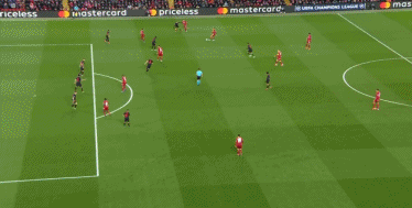第36分钟,阿诺德传中禁区,前点菲尔米诺跟上垫射,球被奥布拉克扑一下后弹到禁区左侧被解围。↓