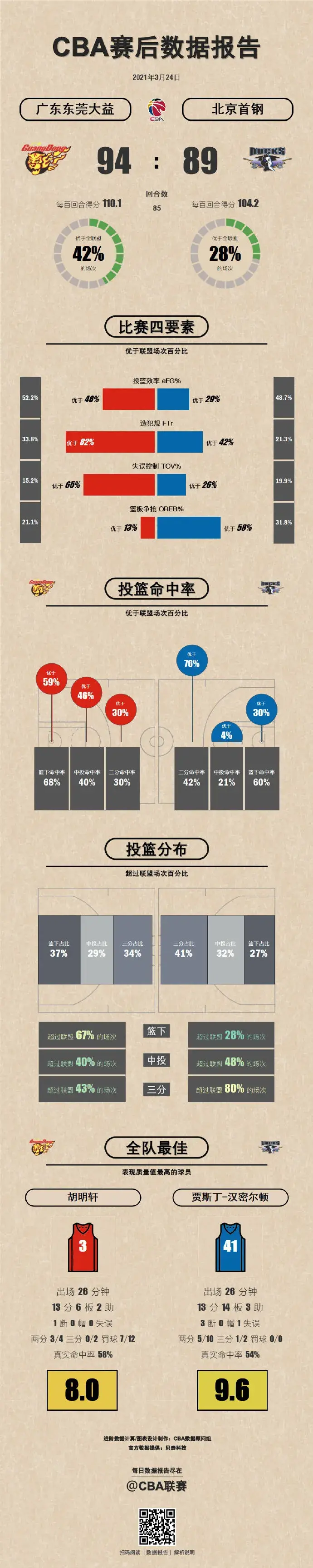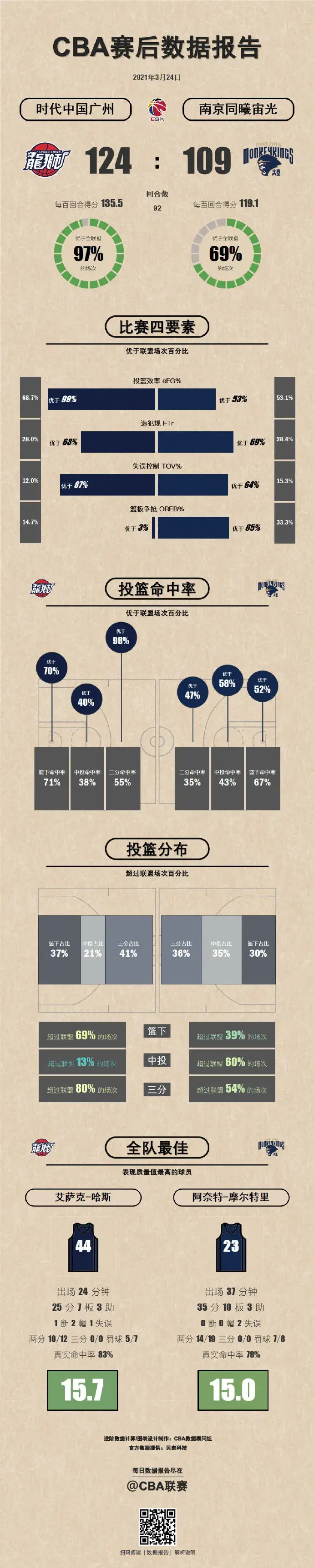 3月24日,CBA联赛第四十八轮比赛开打!昨日一共进行了两场精彩的比赛!话不多说,接下来就跟着CBA君一起来回顾昨日战况吧!