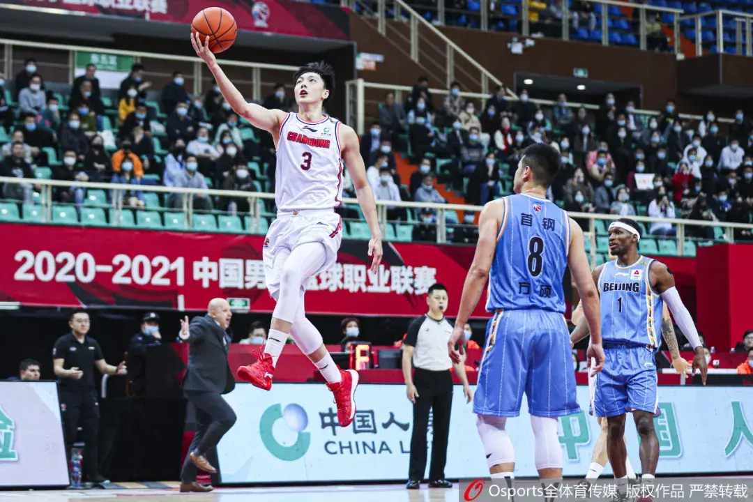 11月3日,在浙江诸暨举行的2020-2021赛季中国男子篮球职业联赛(CBA)第一阶段第八轮比赛中,广东东莞大益队以111比107战胜北京首钢队。