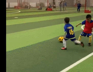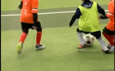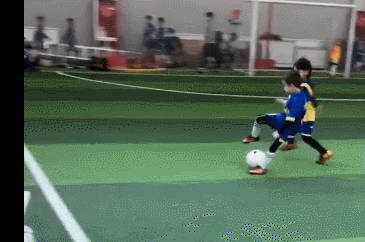 难能可贵的是,这些假动作过人在比赛中一气呵成,小朋友的球风华丽又老练,动作节奏协调又合理。而他身边的对手即便个头比他高出一截,但也无法从他的脚下抢走皮球。