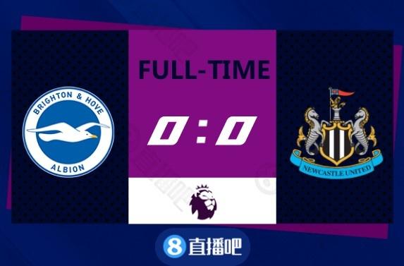 全场比赛结束,布莱顿0-0纽卡斯尔联。