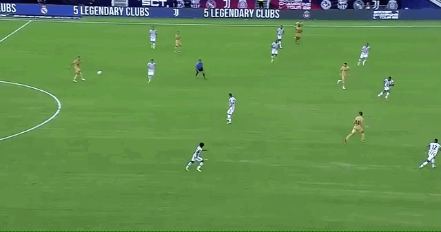 比赛第3分钟,开场不久,巴萨左路大范围转移找到了右路无人盯防的登贝莱,后者拿球后内切直接就是一脚打门,但皮球偏出球门;第6分钟,巴萨前场高位逼抢收获效果断下尤文后场出球,但莱万的最后一击稍显随意,高出球门。