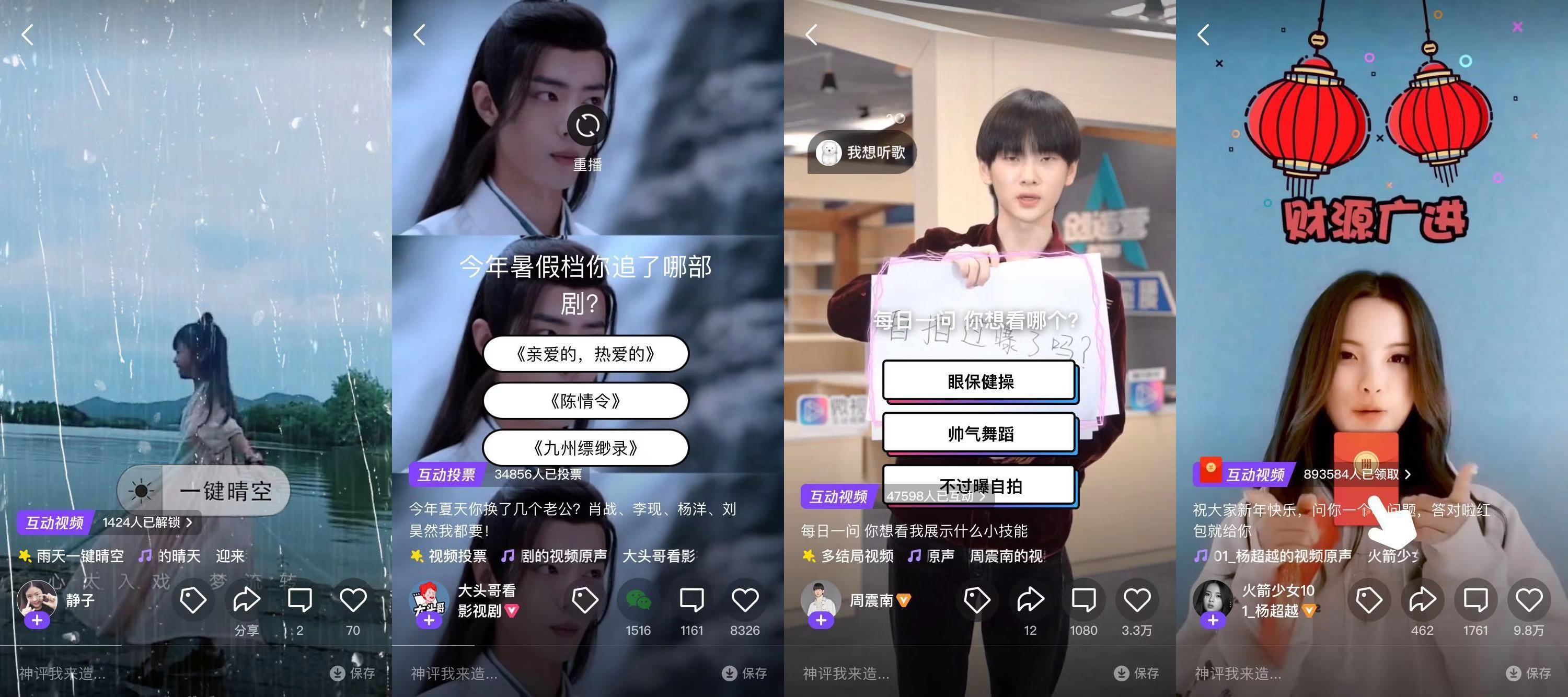 多结局互动的创作自由度则相比更大,用户点击不同的选项会触发不同的视频片段。如果创作者有好的创意,这种玩法能为短视频增加参与感和悬疑感。只是目前平台内有创意的视频还太少,大部分明星的互动核心就是“你想看我做这个还是做那个”,大部分MCN的互动核心就是“你想先看这段视频还是那段视频”。官方需要对平台内好的互动作品作为示范案例进行推广,鼓励用户尝试和发挥创意,当可观看的优质作品达到一定数量级后,才能真正说这是是不同于抖音的差异化亮点。