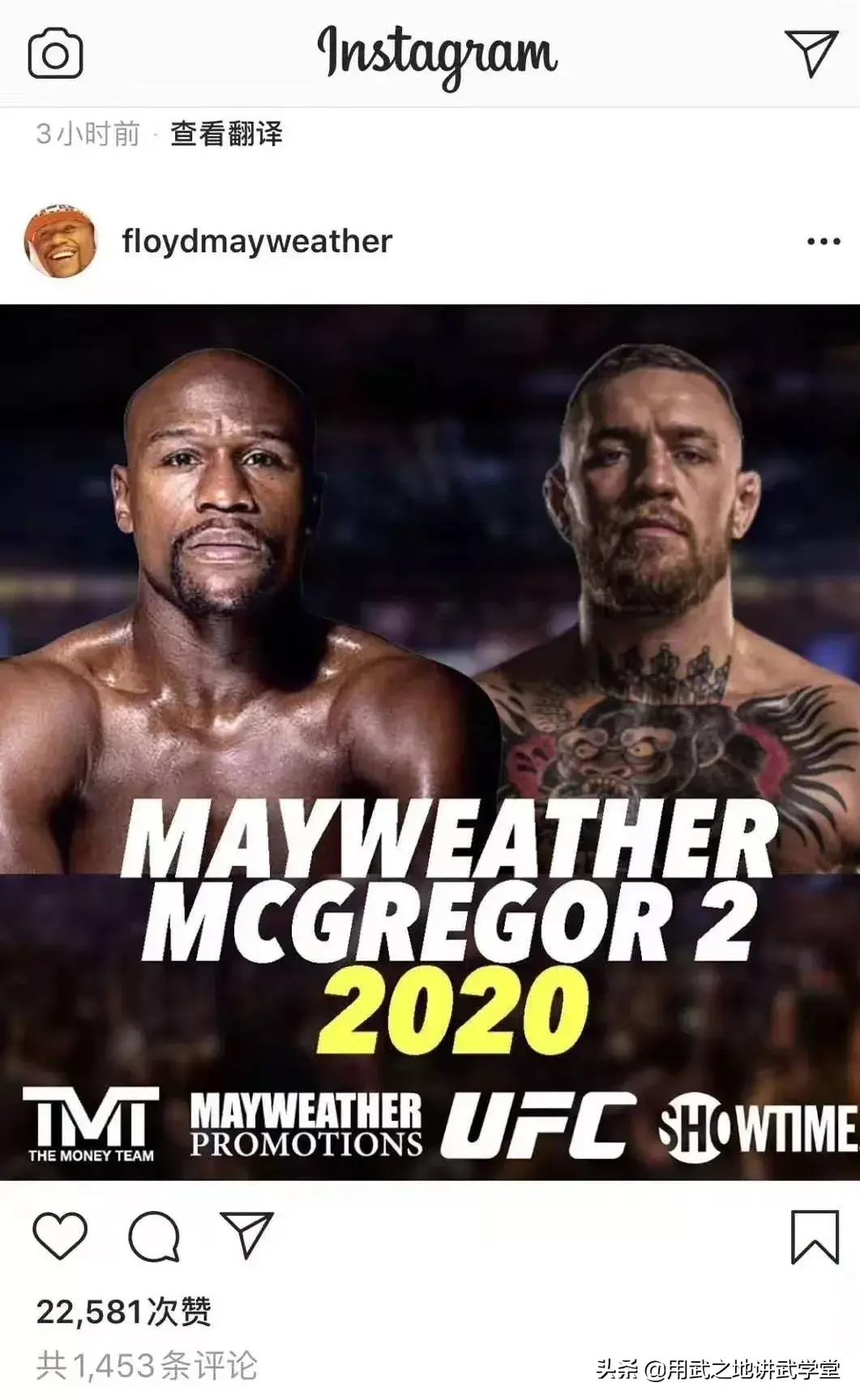 梅威瑟的社交媒体发布的动态