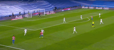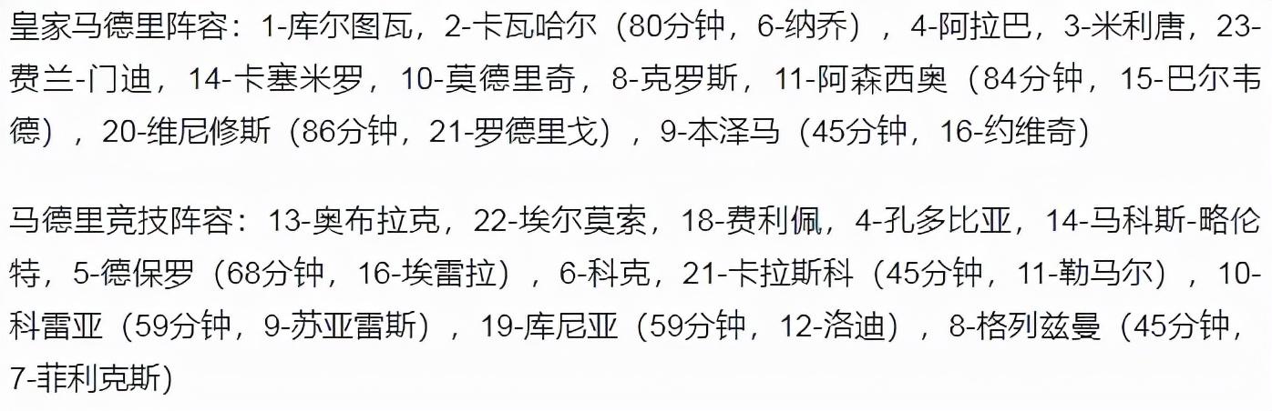 第16分钟,皇马打破僵局,阿森西奥右路向前直塞,维尼修斯在禁区右侧接球挑传门前,本泽马跟上右脚凌空扫射破门,皇马1-0领先马竞。