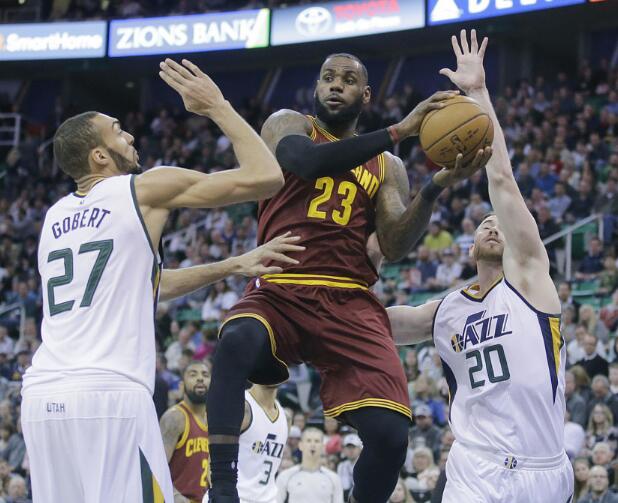 第三节詹姆斯开启全力詹模式,先助攻TT暴扣,自己张手命中三分,再助TT扣篮,下快攻接利金斯分球暴扣。回头詹姆斯再连砍8分,包括一记抢断后命中超远追身三分,骑士半节打出19-2,以60-58反超。但海沃德连砍10分,爵士回敬16-0!最终爵士75-66领先进入末节。第四节欧文三罚三中,勒夫投进三分,但莱尔斯连拿8分,爵士89-74领先15分。欧文和詹姆斯开始包办骑士进攻,但他们未能挡住爵士的外线火力,海沃德命中三分,勒夫在最后3分53秒投进三分,骑士88-96落后。香波特突破扣篮,将分差缩小至6分。但胡德在还剩2分05秒时命中底角三分。詹姆斯两罚全中,胡德跳投不中,但戈贝尔抢到进攻篮板,希尔最后43秒突破造成欧文拉人犯规,但两罚不中。但欧文继续三分打铁,希尔两罚中一锁定胜局。
