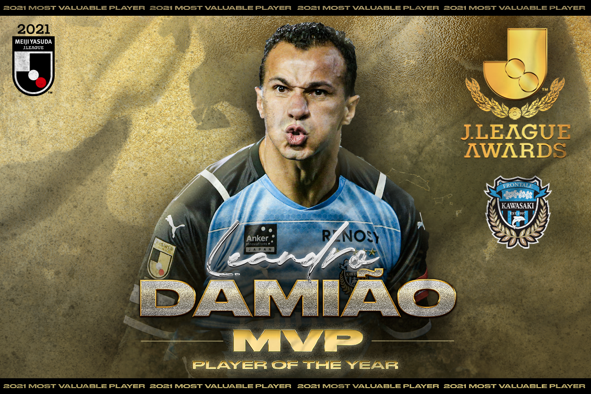 2021年J联赛MVP获得者:莱昂德罗-达米昂,本赛季代表川崎前锋联赛出场35次,打进23球并有10记助攻。