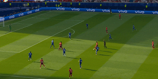 在弗鲁勒进球之前,瑞士已经从中路发起了多次冲锋,意大利防线的调整能力很差,球员间完全没有默契度可言。