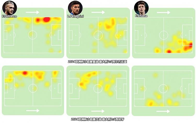 迪马尔科受伤,斯帕莱蒂旋即放弃了佩莱格里尼,基耶萨被调到了右路,巴雷拉踢得非常别扭,意大利最重要的一条进攻通道关闭。