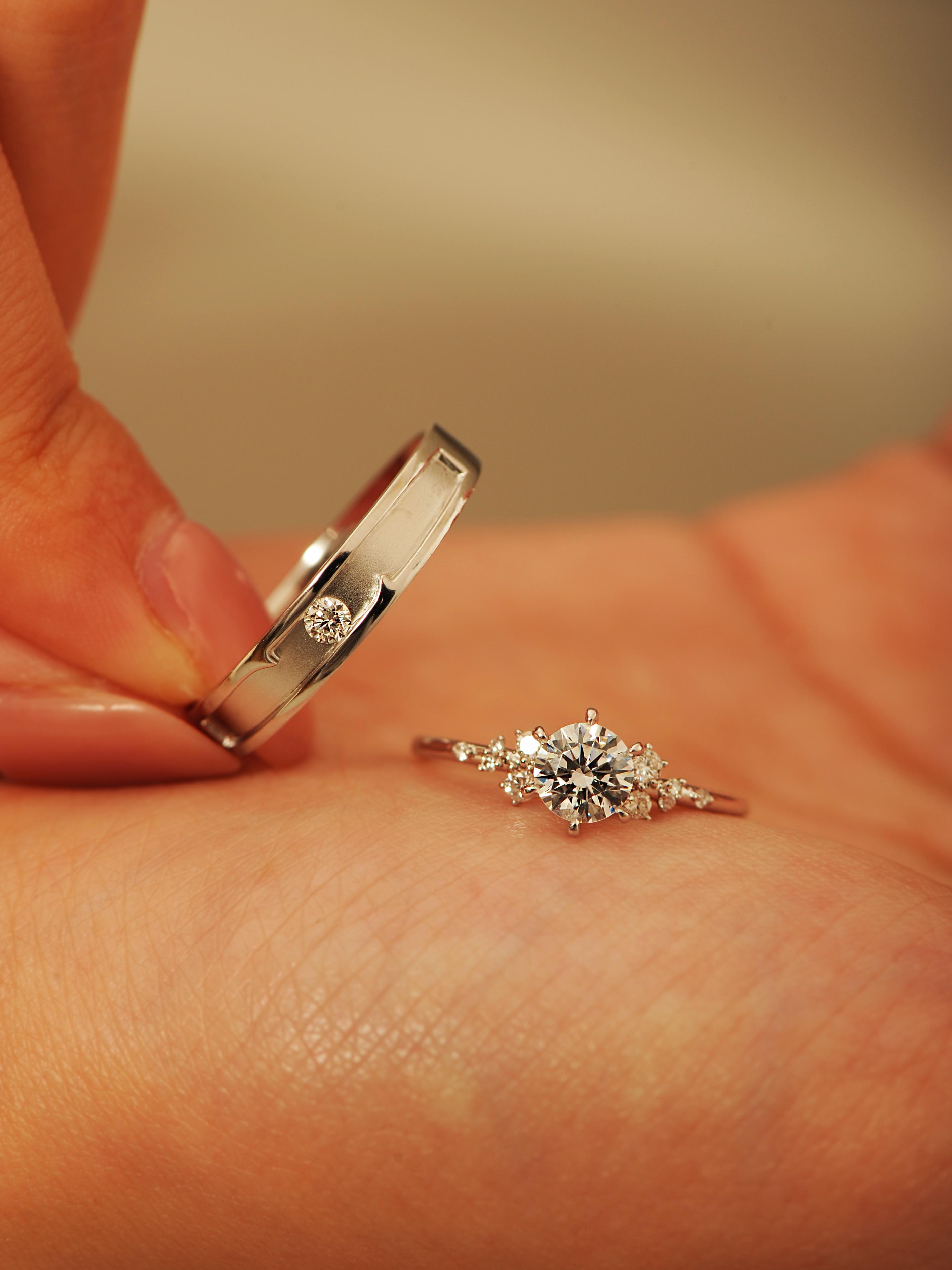 在洗澡、洁面或是做家务时建议大家摘掉戒指,平常的洗护用品和清洁用品中都含有一定的化学物质,或多或少会对钻戒有一定的腐蚀作用。