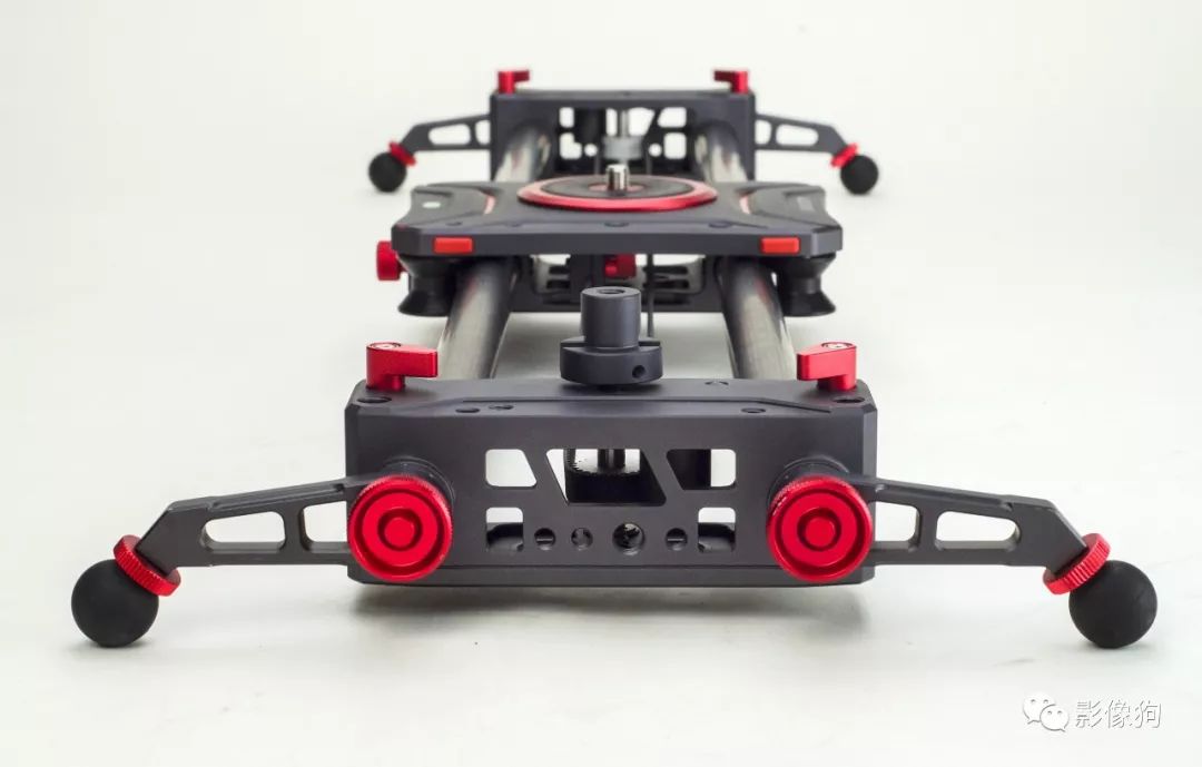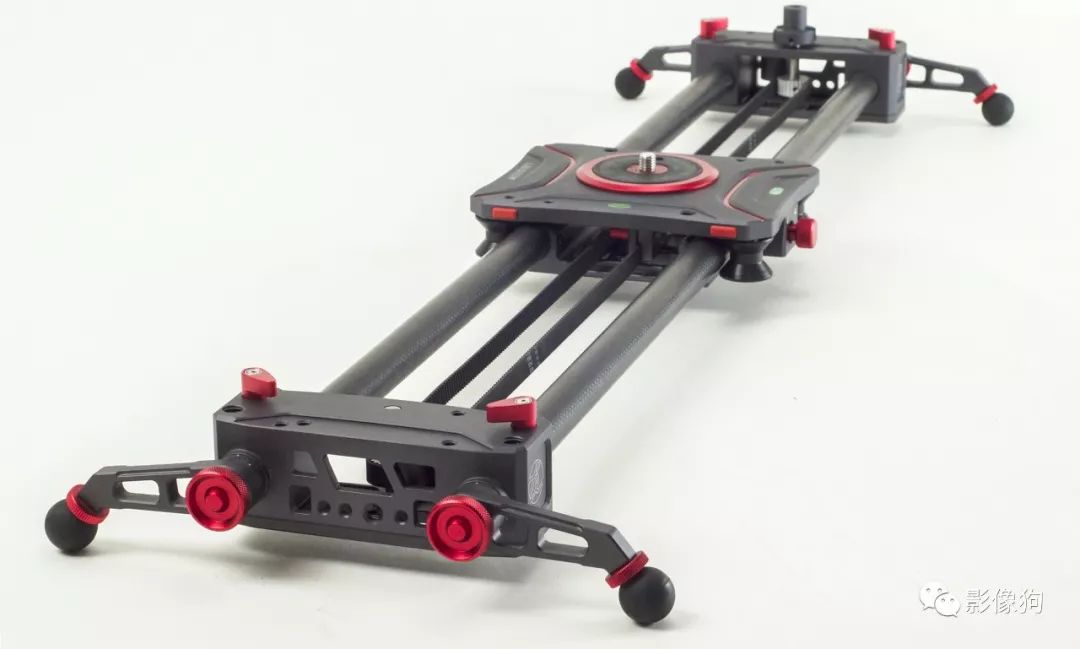 美洲豹的碳纤维管材非常值得一说,使用的是日本进口的超轻量14层高强度纯碳纤维管, 经过多道工艺打磨碳管达到高度顺滑。两根碳管之间的宽度增加到225mm,也就加宽了整个滑轨的宽度,使用电影机加长焦电影镜头时,进一步降低了侧翻概率, 提高稳定性。