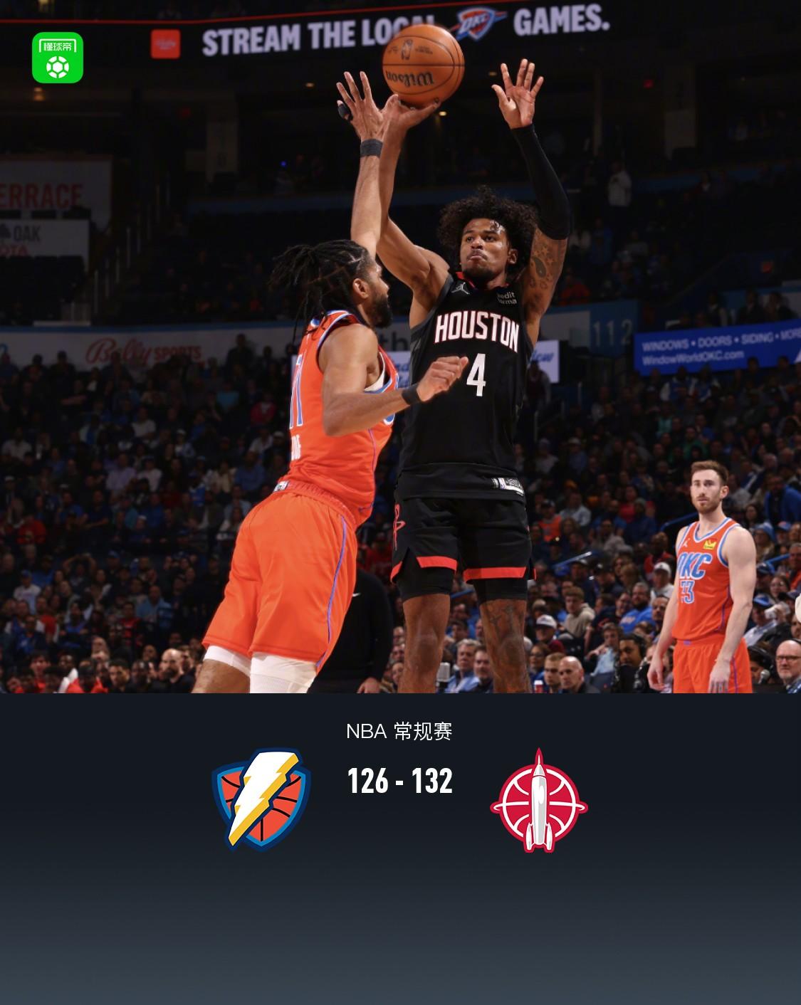 加时赛雷霆吉迪拿下5分,火箭狄龙拿下8分,最终雷霆126-132不敌火箭