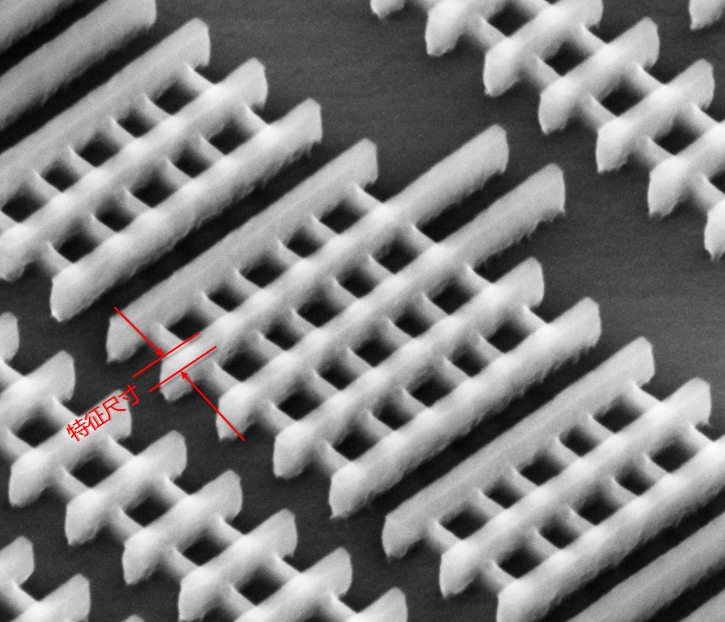 对比下面的显微图像,我们也可以判断出其特征尺寸为下图红线所标识。