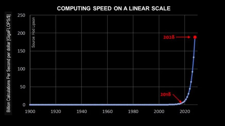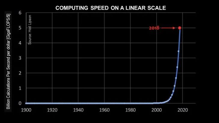 从另外一个角度,只要晶体管数量的增长继续遵循指数曲线,那么,未来的每一代人回过头来看时,过去的时代都会是几乎没有进步的时代。这其实就是一个悖论。