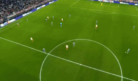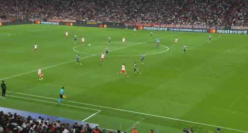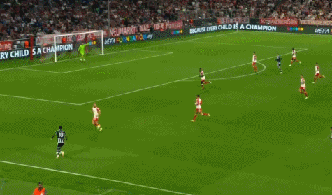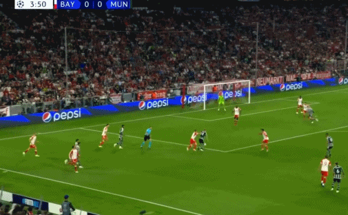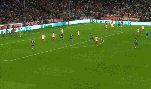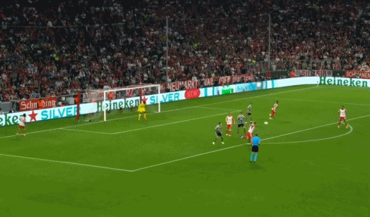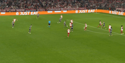 第90+2分钟,穆勒抢前点铲射中柱,紧接着基米希精妙挑传,特尔大空位精彩衔接冷静破门,拜仁4-2!