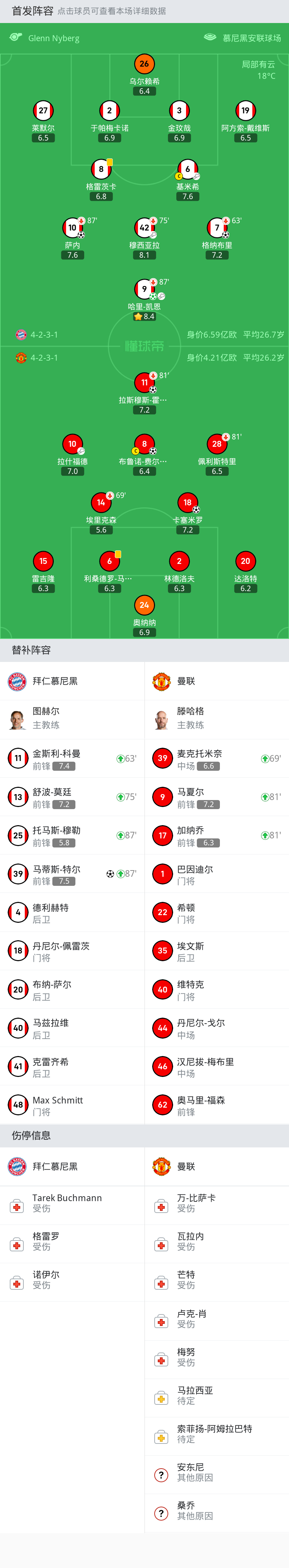 上场替补:75'13-舒波-莫廷, 87'25-托马斯-穆勒, 63'11-金斯利-科曼, 87'39-马蒂斯-特尔