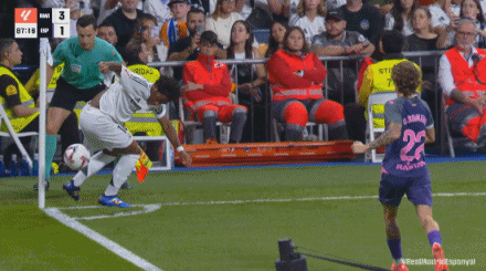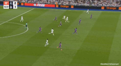 第75分钟,姆巴佩分球左侧维尼修斯,后者稍作调整送出精妙外脚背传中,皮球绕过所有防守人落在后插上的罗德里戈脚下,罗德里戈轻松包抄完成得分,皇马2-1逆转比分↓