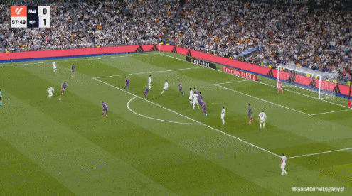 第54分钟,西班牙人后场长传发动进攻,卡雷拉斯左侧下底横扫门前,库尔图瓦扑救失误下蛋漏球自摆乌龙,皇马主场0-1落后↓
