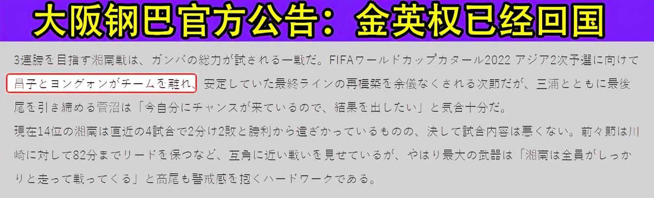 韩国队是5号要打世预赛,金英权作为核心球员,已经回国集训了。