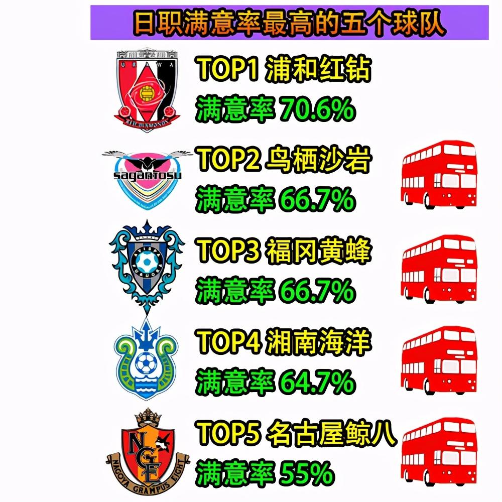 大家看看这个日职满意率排行榜,满意率前5的球队,4个都是大巴队。
