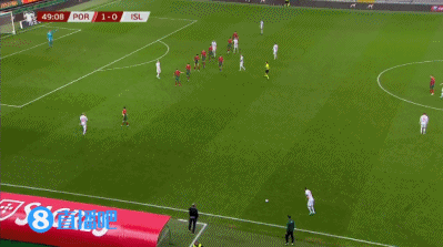 第37分钟,B西脚后跟做球,B费抽出一脚球速极快的低空下坠球,葡萄牙1-0领先冰岛↓