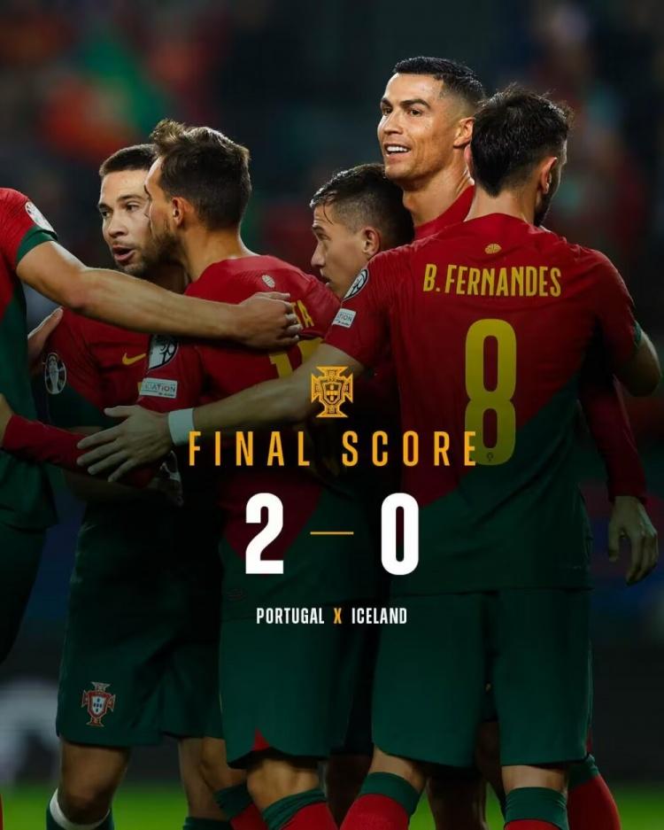 不久后比赛结束,最终,葡萄牙主场2-0力克冰岛,预选赛十战全胜收官。
