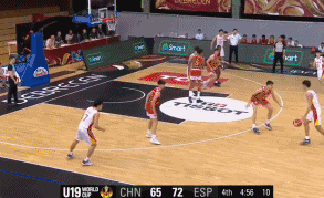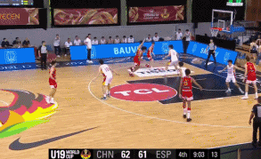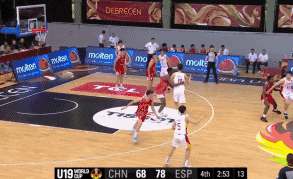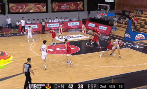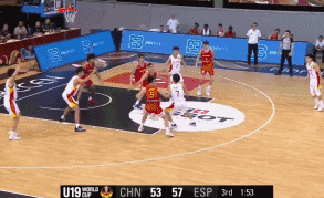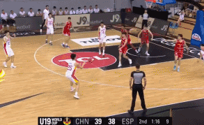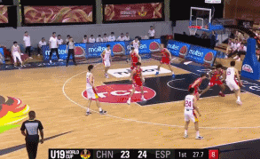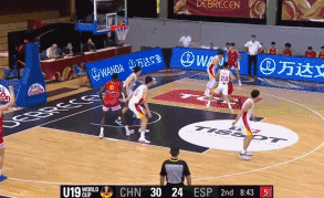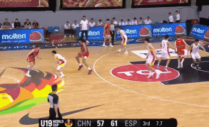 赵维伦是真正的主力控卫,登场后就有三分入账,全场比赛贡献5分1篮板2助攻之余,更让人惊叹之处,虽然是赛场最矮的球员,西班牙也全力想吃错位,可赵维伦的防守如图所示基本不吃亏,大大超出所有人预期,遗憾的是,强硬防守带来犯规麻烦,最终5犯离场。