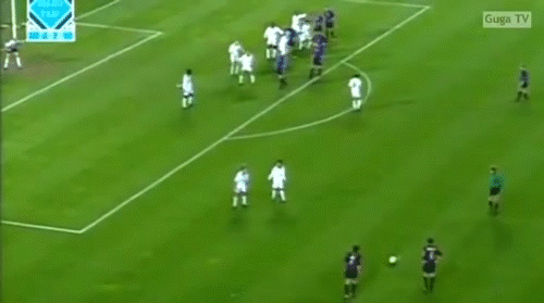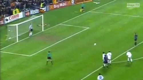 在上半场结束前,菲戈的进球,令巴萨2-0领先。