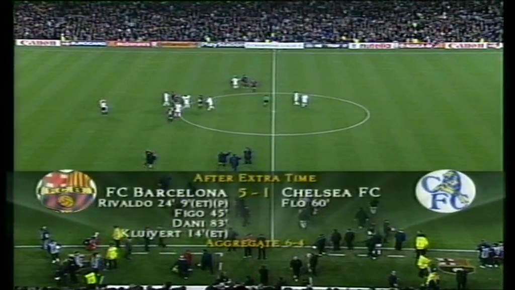 加时赛第99分钟,切尔西左后卫巴巴亚罗在本方禁区内撞倒菲戈,巴巴亚罗被红牌罚下,巴萨获得点球,上前主罚的依然是里瓦尔多,这次,里瓦尔多将球罚进,巴萨4-1切尔西。这是里瓦尔多在这个赛季欧冠打进的第10球,最终他与劳尔、波尔图前锋贾德尔并列金靴。