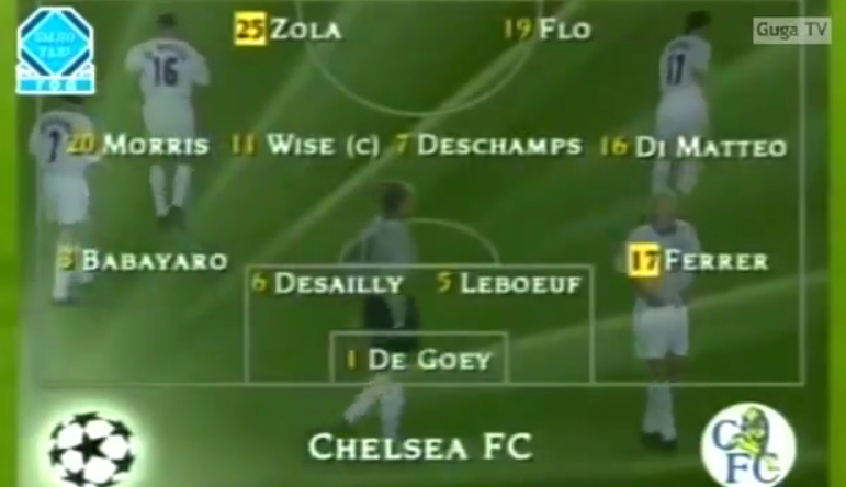 切尔西主帅维亚利排出的首发则为:德胡耶、巴巴亚罗、德塞利、勒伯夫、费雷尔、莫里斯、怀斯、德尚、迪马特奥、佐拉、弗洛。其中德塞利、勒伯夫、德尚三人,是1998世界杯冠军法国队的成员。