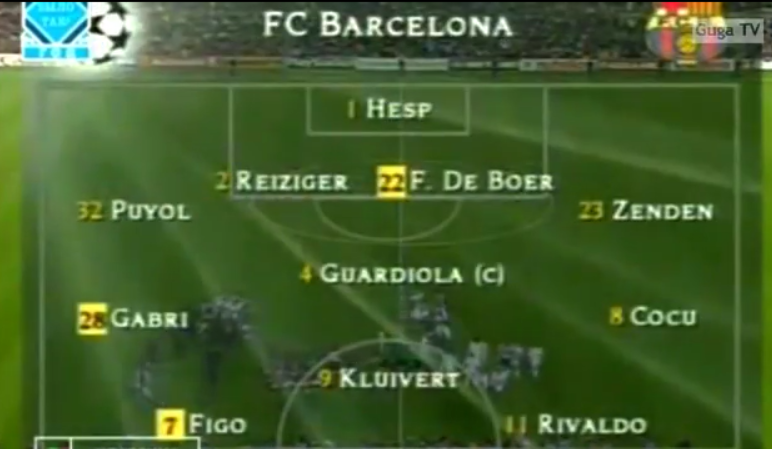 次回合巴萨主场迎战切尔西,当时巴萨主帅范加尔排出了这样的首发阵容:海斯普、岑登、弗兰克·德波尔、雷齐格、普约尔、科库、瓜迪奥拉、加布里、里瓦尔多、克鲁伊维特、菲戈。当时加布里21岁、普约尔22岁,两人都是在这个赛季迎来巴萨一线队首秀,并受到范加尔的重用。虽然里瓦尔多个人更希望踢中场中路位置,但范加尔这场仍坚持将里瓦尔多放在了左边锋位置。