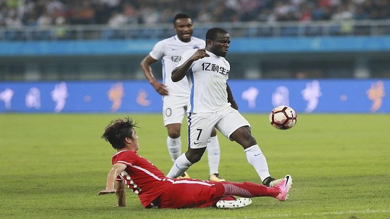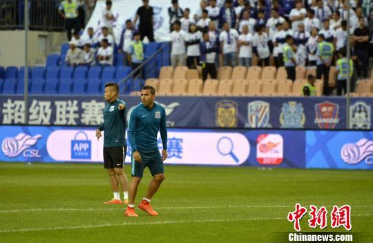 上海绿地申花队队员特维斯赛前训练。 蔡志坚 摄