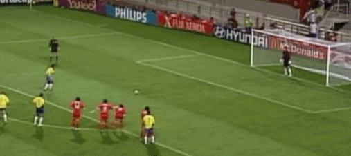 第15分钟,罗伯特卡洛斯打入世界杯历史上球速最快的任意球。