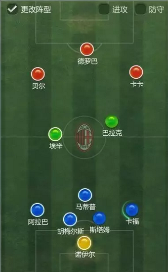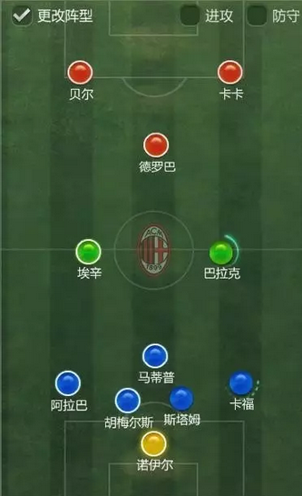 打法:边路相对较弱,所以进攻多靠中路的二过一,在禁区弧顶直接ca或a到禁区中会有奇效。