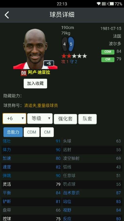 这会来说后腰位置,这次要推荐的是已经小有名气的阿卢迪亚拉, 你们大概想说06U阿卢迪亚拉我早知道了,我今天推荐的是他的次巅峰卡08E阿卢迪亚拉+6,同样是5000万ep的情况下,08E的6卡比06U的4卡多了很多进攻属性,防守属性不分伯仲,可以把斯科尔斯,贝隆防得动弹不得,190+的黑又硬你值得拥有,当然合卡不是很擅长的同学可以用06U阿卢迪亚拉+4代替