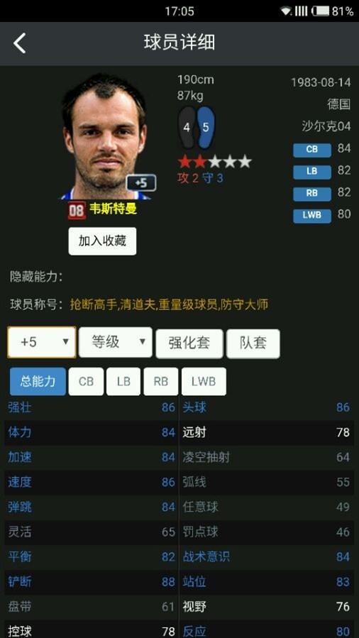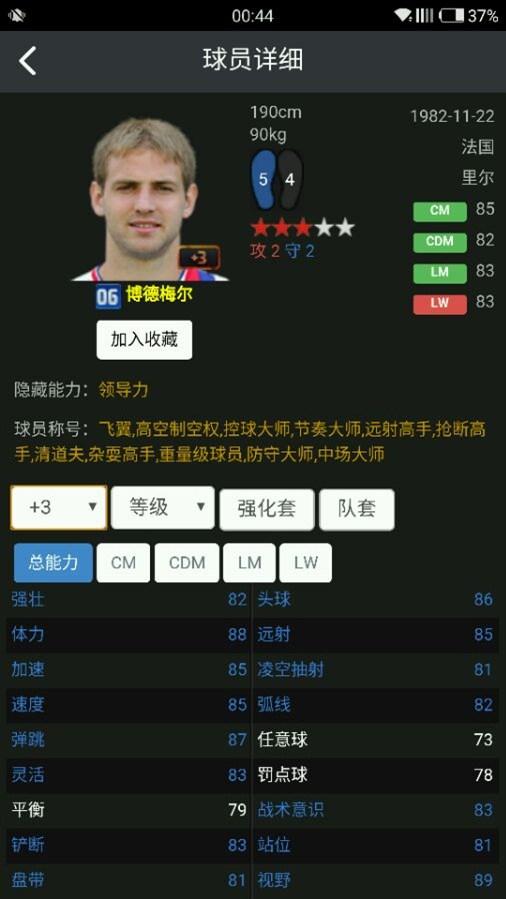 这波要推荐的其实也算是很红的妖人了,只不过在国服,个人认为他的价格还是被低估的,而且实在是太好用了,不推荐对不起良心了,他就是06U博德梅尔 。190CM身高,90KG体重,还是健硕体型,这模型我敢说是ol3第一都不为过,再看数据,几乎能打除了门将任何一个位置,除了没五星花式,他就是巴拉克,3卡就毕业,土豪请任性上银,我心中的第一性价比CM