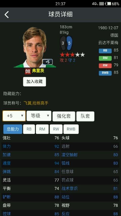 RB,他就是08E弗里茨 ,自从有了他,再也没有发生过拉姆被对面伊布力压头球,全都改成了弗里茨倒钩解围,相当潇洒,单防骡子贝儿毫无压力,唯一的缺点,这家伙银卡要一个亿,大家量力而行吧