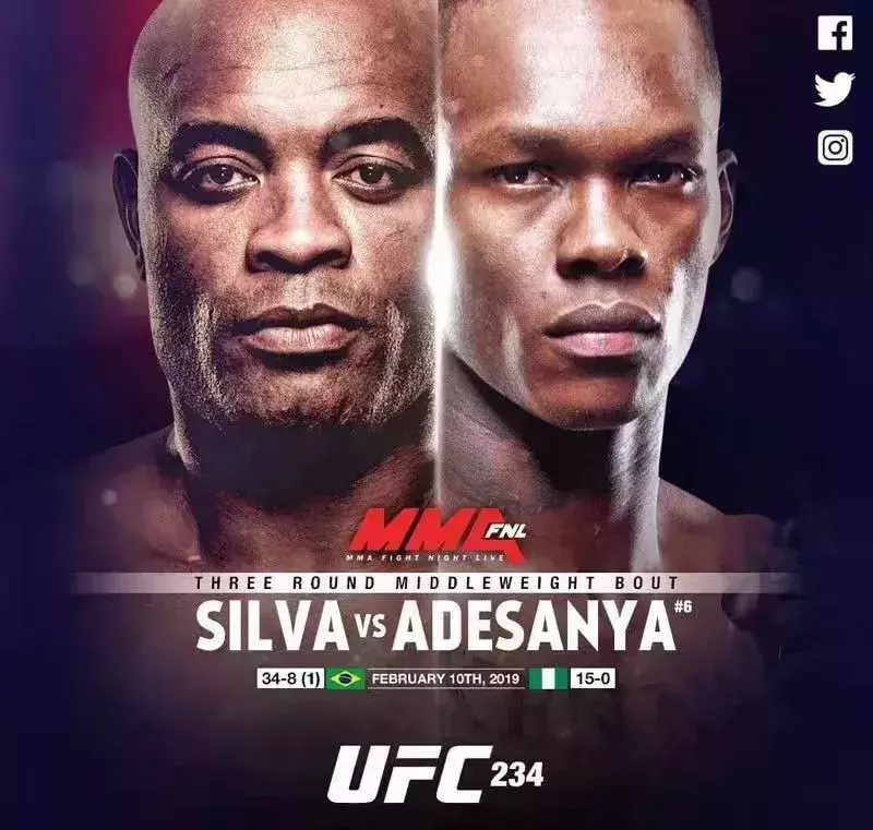 UFC234期将在北京时间明年2月10日进行,UFC著名传奇“蜘蛛”安德森·席尔瓦宣布回归,对手是最近大红大紫的“黑龙”伊斯利·阿迪萨亚(Israel Adesanya)。